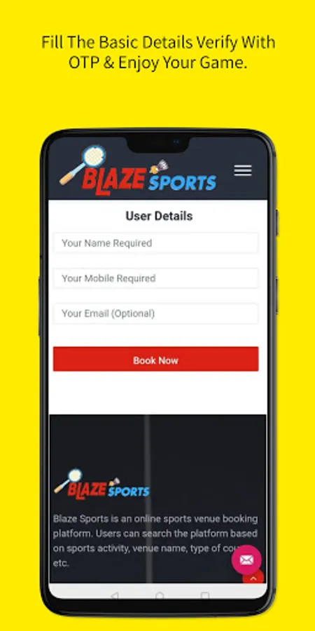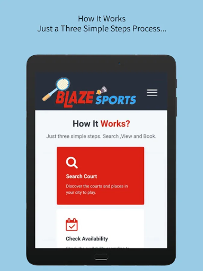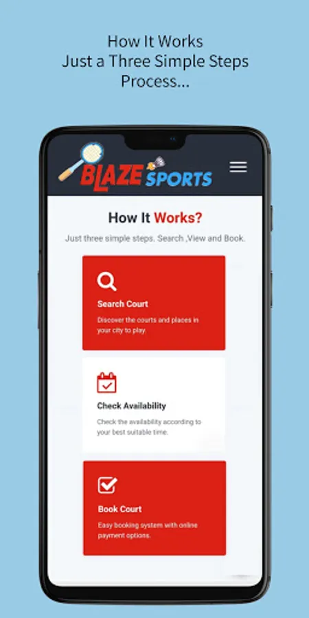 Blaze Sports is an online sports venue booking platform. Users can search the platform based on sports activity, venue name, type of court, etc.