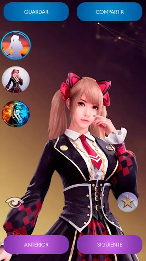 With our app you can select your favourite FF character and change the setting to create your own wallpaper. You can also apply our 11 exclusive filters to get a stunning image that you can use as background on the screen of your mobile, share in social networks or messaging apps, or save on the reel of your mobile.