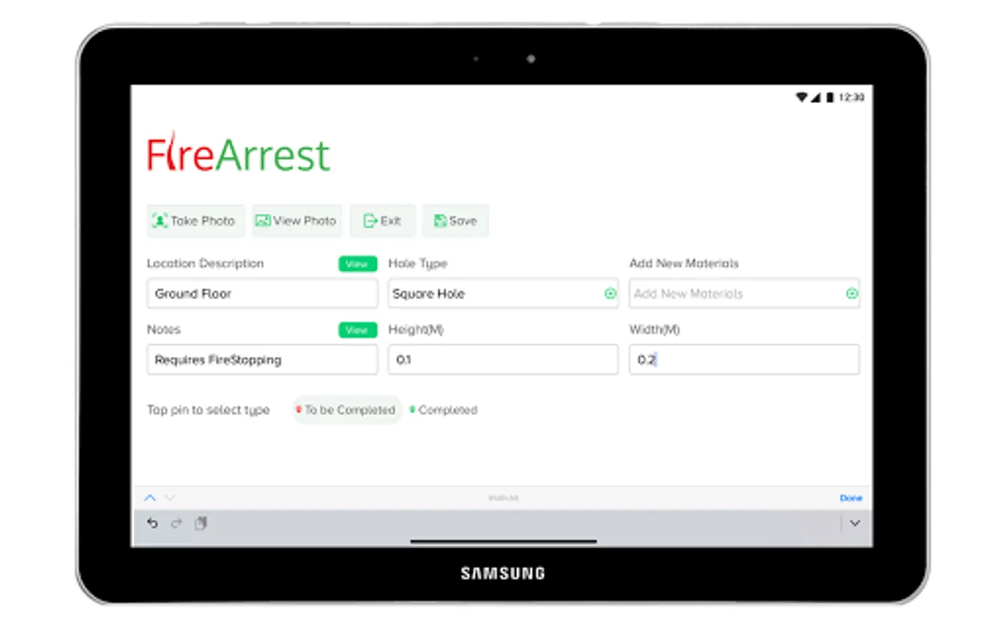 Developed alongside fire stopping professionals the FireArrest recording app has been designed to help those in the passive fire protection industry meet the many needs and expectations. FireArrest covers every stage of your Fire Stopping project, from initial survey right through to installation and completion. A range of easy to use tools and features enable you to accurately report and complete work all whilst opening communication channels and keeping a comprehensive audit trail.
