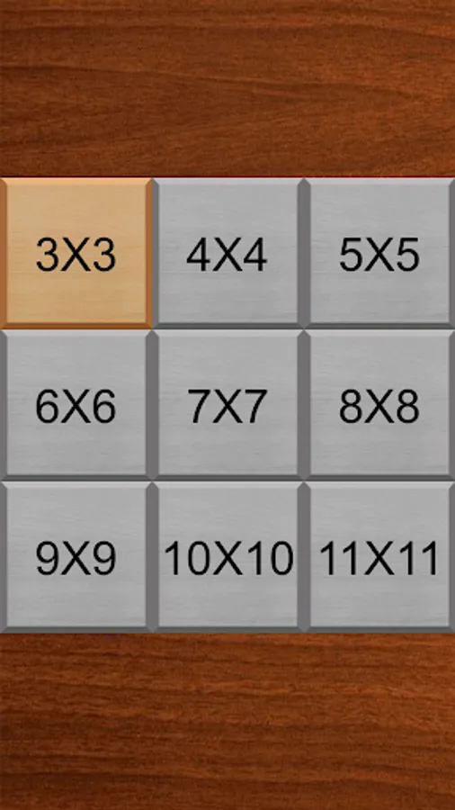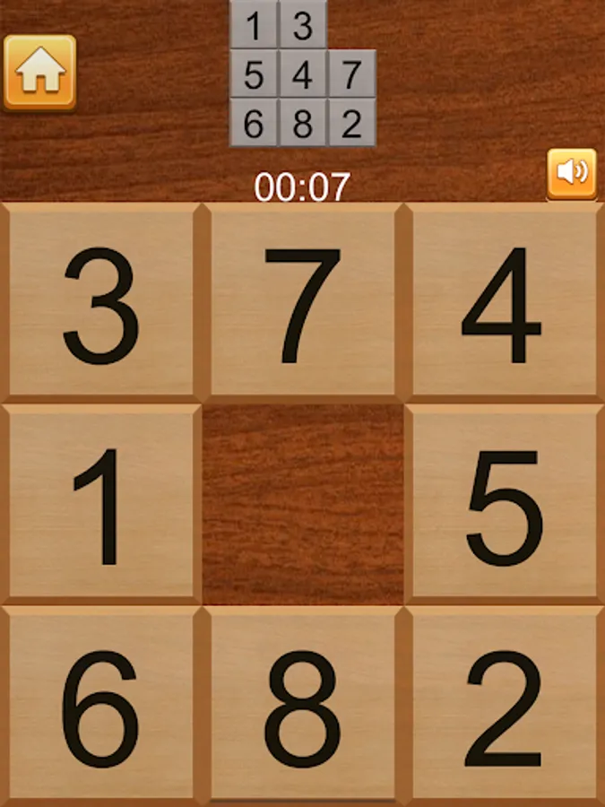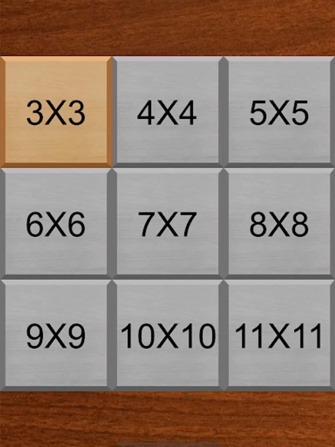 The basic form is a 3 by 3 grid. There are 15 tiles and the 16th place is empty. Before play begins the tiles are randomly scrambled by sliding to any starting position. Tap and move the wood number tiles. The object of the game is then to unscramble the tiles to get them into consecutive order.