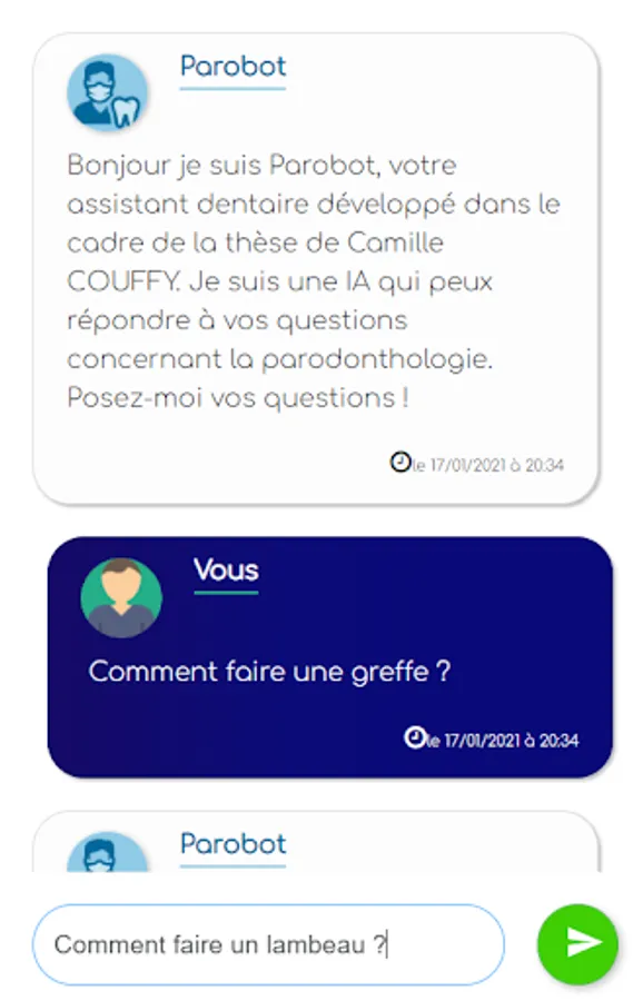Parobot is a chatbot for educational purposes in dentistry.