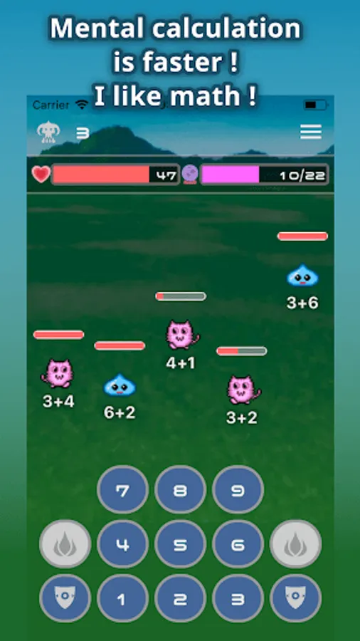 Cute dot monsters will gradually disappear, so answer the calculation questions and kill them.
