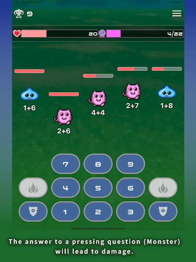 The answer to a simple calculation problem such as 1 + 1 will be the damage that hits the monster.