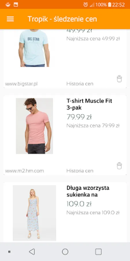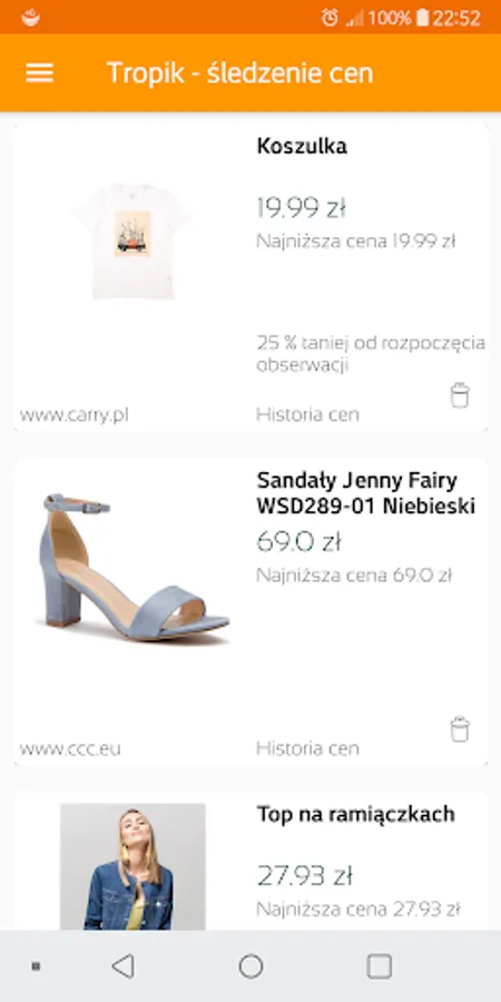 You copy the product link from the web browser and paste it in the Trop application. From now on you will receive notifications of changes in product prices and rebates. The application supports the largest online stores (clothing, electronic, tourist, bookstores). List of stores available in the application. The application also works with some non-list stores that post information about products according to accepted programming standards.
