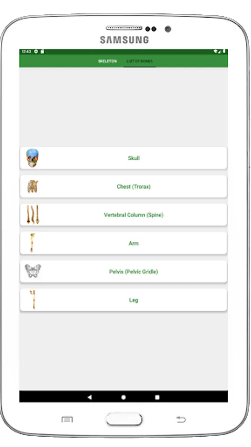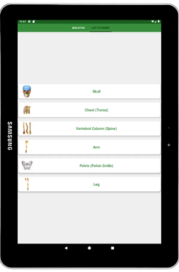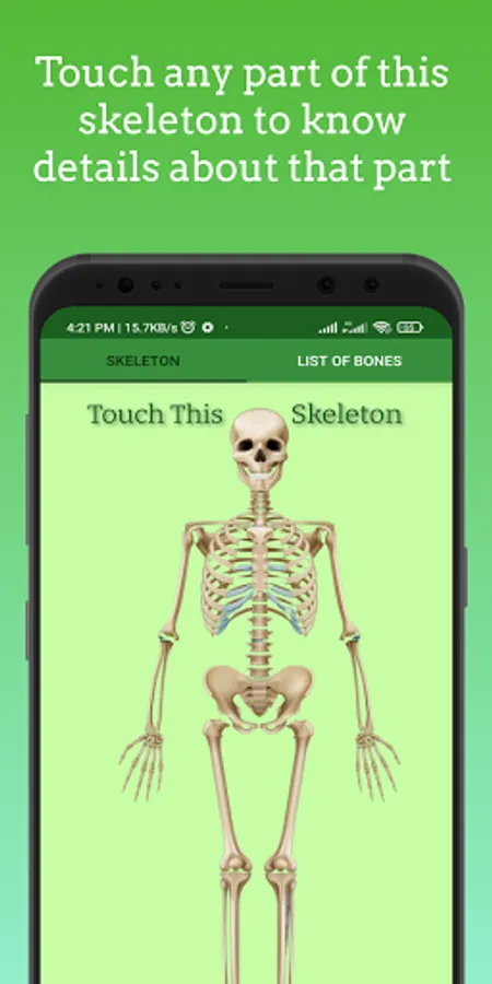 This app contains details about: human skeleton, human anatomy, skeletal system, 3D model of human skeleton as well as skeletal system, anatomy of every single bone, bones anatomy, anatomy of human skeleton, anatomy of skeletal system etc.
