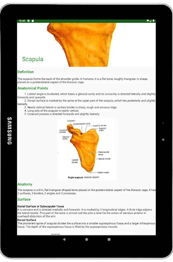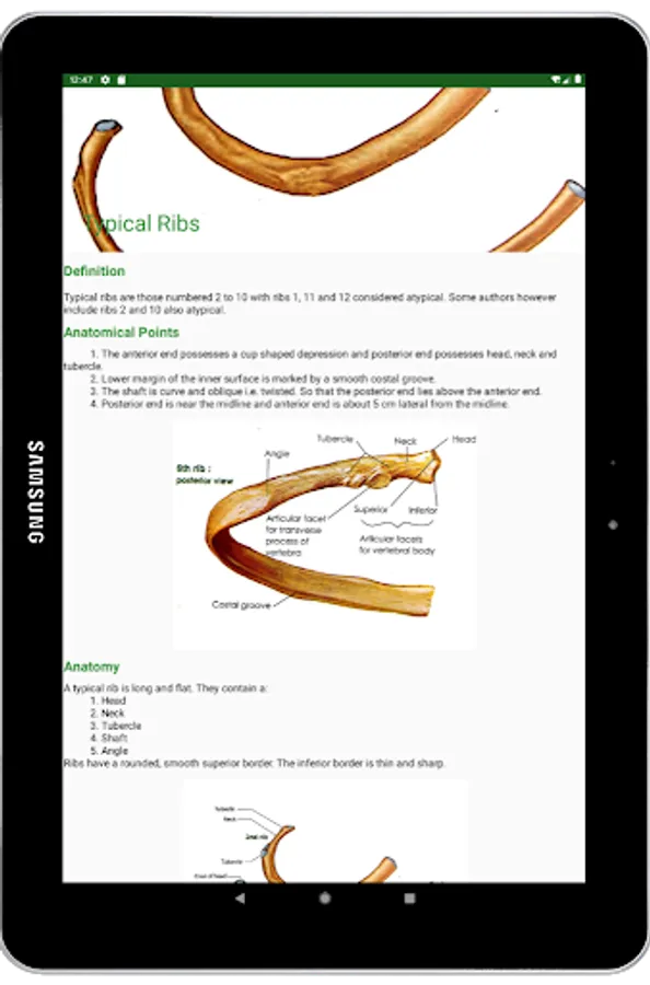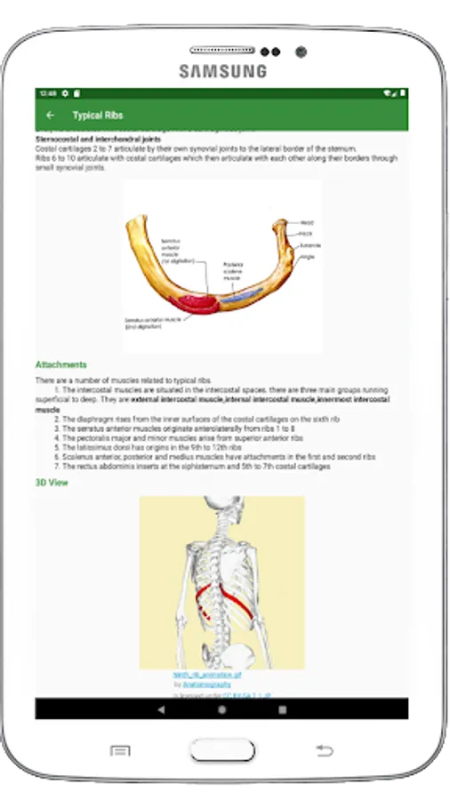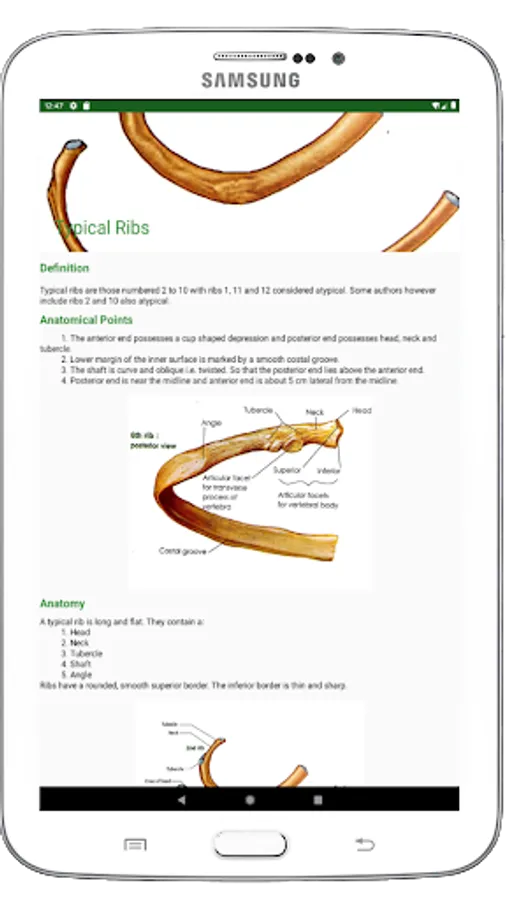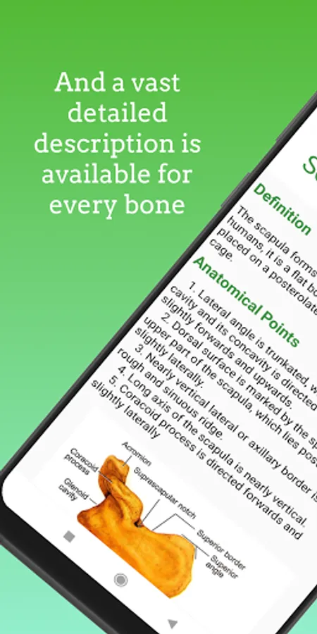 This app describes every single bone of human skeleton. All bones are arranged perfectly in this app so that a person can find a bone very easy. You can touch the skeleton and the part in which you touch, details of that part will be shown. Definition, anatomy, anatomic position, structure, muscle and ligament attachments, functions etc. are described for each and every bone of human skeleton in this app. More than one perfectly labeled pictures are provided for every bone. Moreover 3D models of bones also provided for better learnings.