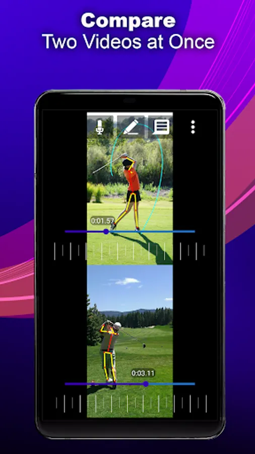-Side by Side Video Comparison: compare your player's mechanics to a reference coach or professional player frame by frame. You pick the videos for comparison and step through them at your own pace. (Requires Pro Upgrade)