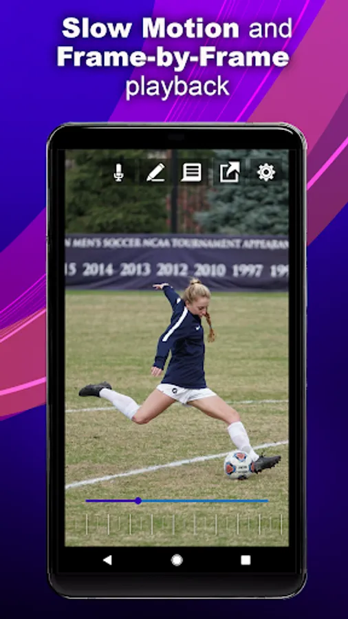 Analyze your athletic performance with a frame by frame breakdown or slow motion video playback. Draw lines and curves on the video for comparison. Share your breakdown screenshot with your coach or another player to get feedback. Stop guessing and start improving today!