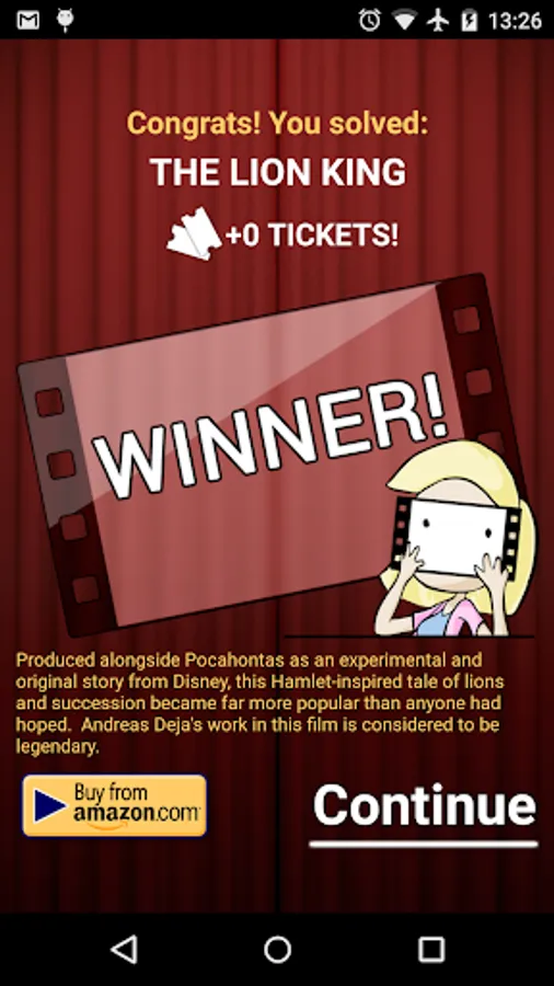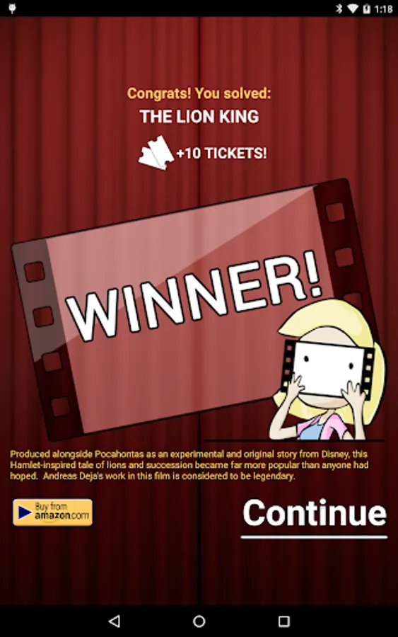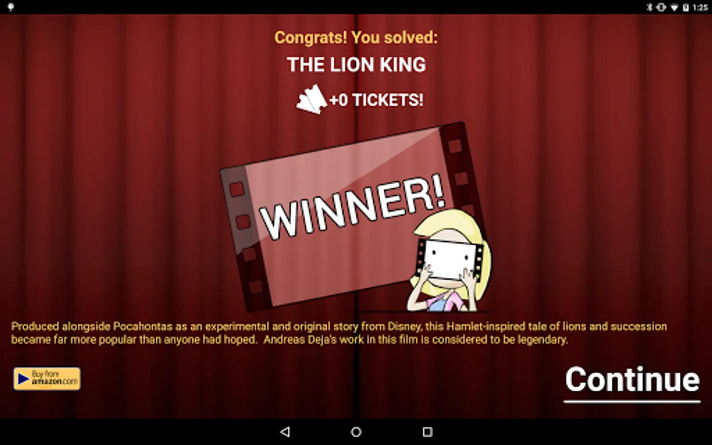 It's a shame this has to be a "feature." Play our game when you want it, however you want it. No time restrictions, no distractions in your notification menu, no bugging your friends to move forward. If you're good at the game and love a challenge, play it all for free! If you want to buy-in and unlock everything up front, you can do that too. Skipping levels is free, so complete each category in whatever order you like! There is also a hint system for when you're stuck on a particular movie.