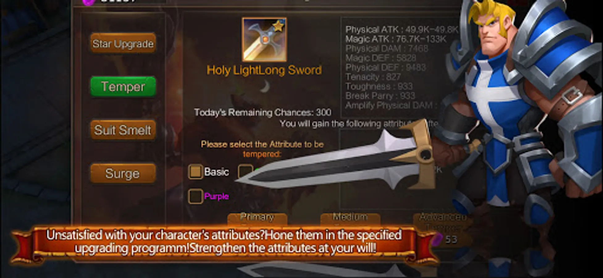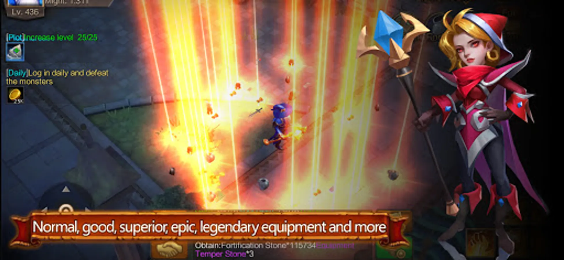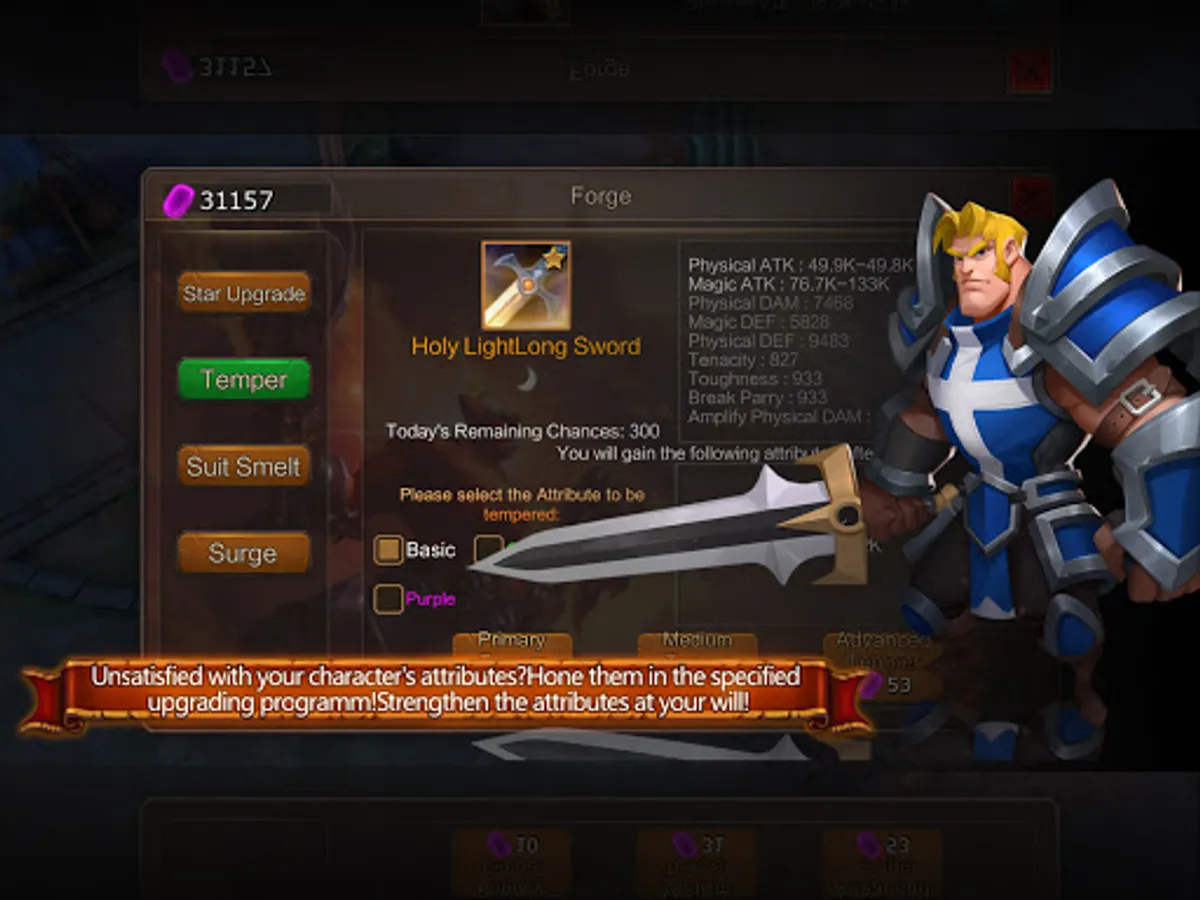 Equipment: normal, excellent, superior, epic, legend, forklore, package, growth gadget etc., which can be strengthened to build characteristic weapon