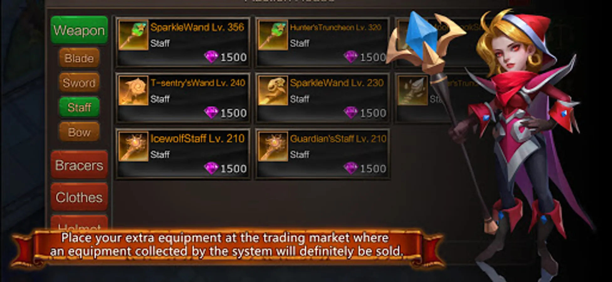 Trade: rare equipment can be bought in the system after its auction is failed and please be assured to purchase