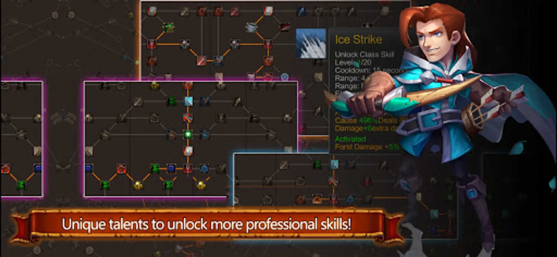 Skill: 100 some active, passive, vocational, talent, attack skills for free combination to build a powerful set of skills and push the vocational limits