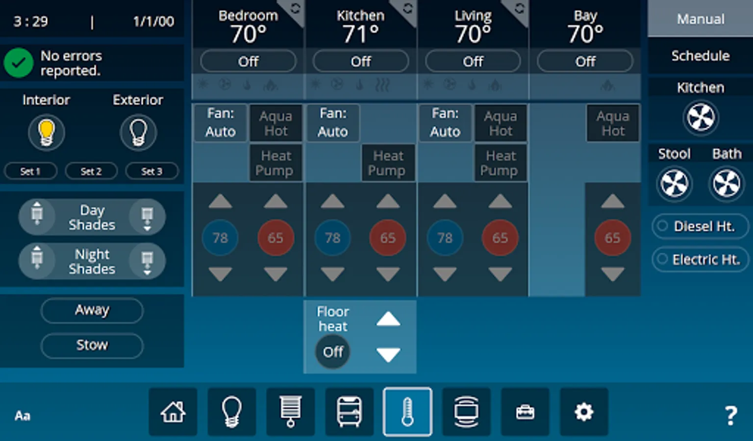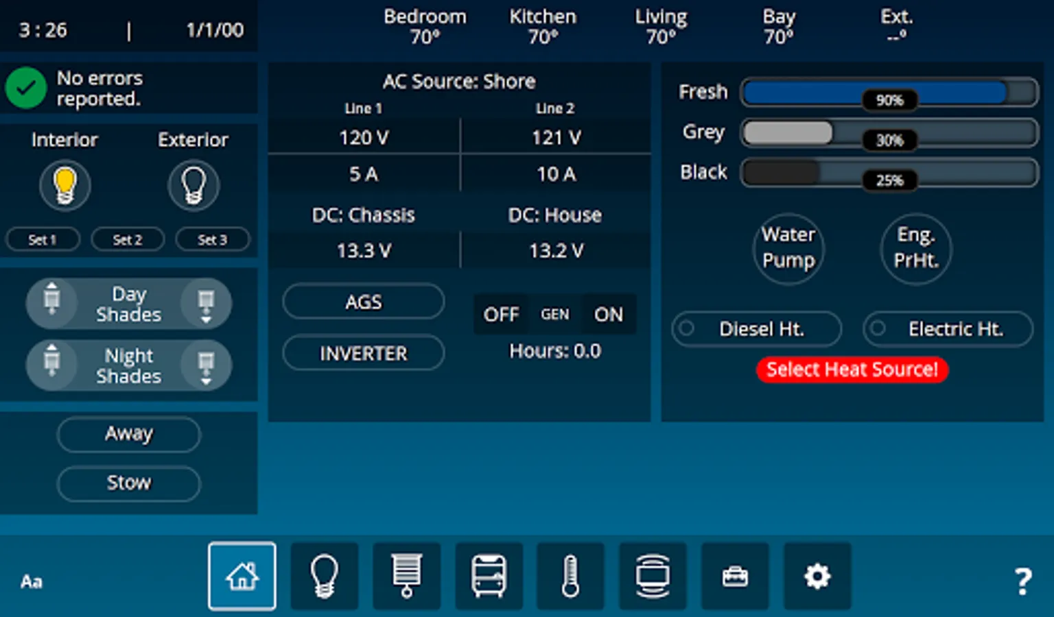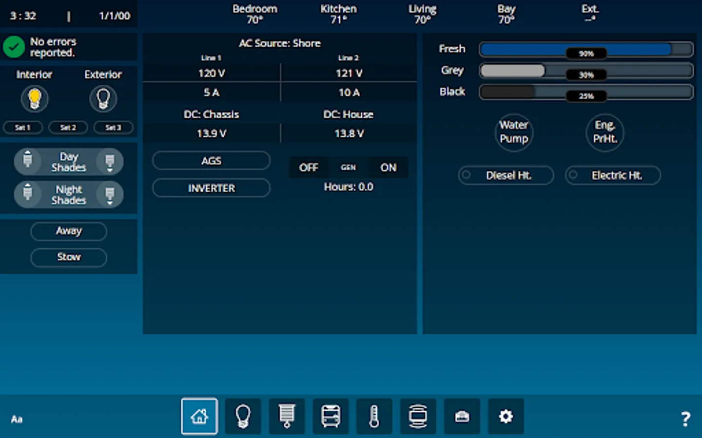 Vegatouch Nebula is a Universal coach control system packed into a clean, simple interface. The Vegatouch Nebula app can connect to a vast array of components to give you total control of all electrical, electronic, and mechanical systems from a smartphone or tablet. Pair your mobile device with your Entegra Anthem or Cornerstone built-in Vegatouch screen to monitor and control various components. Vegatouch Nebula is available only for 2019 and newer Anthem and Cornerstone models. Use the Nebula app on a tablet for a more detailed and custom experience only available for Entegra coaches.