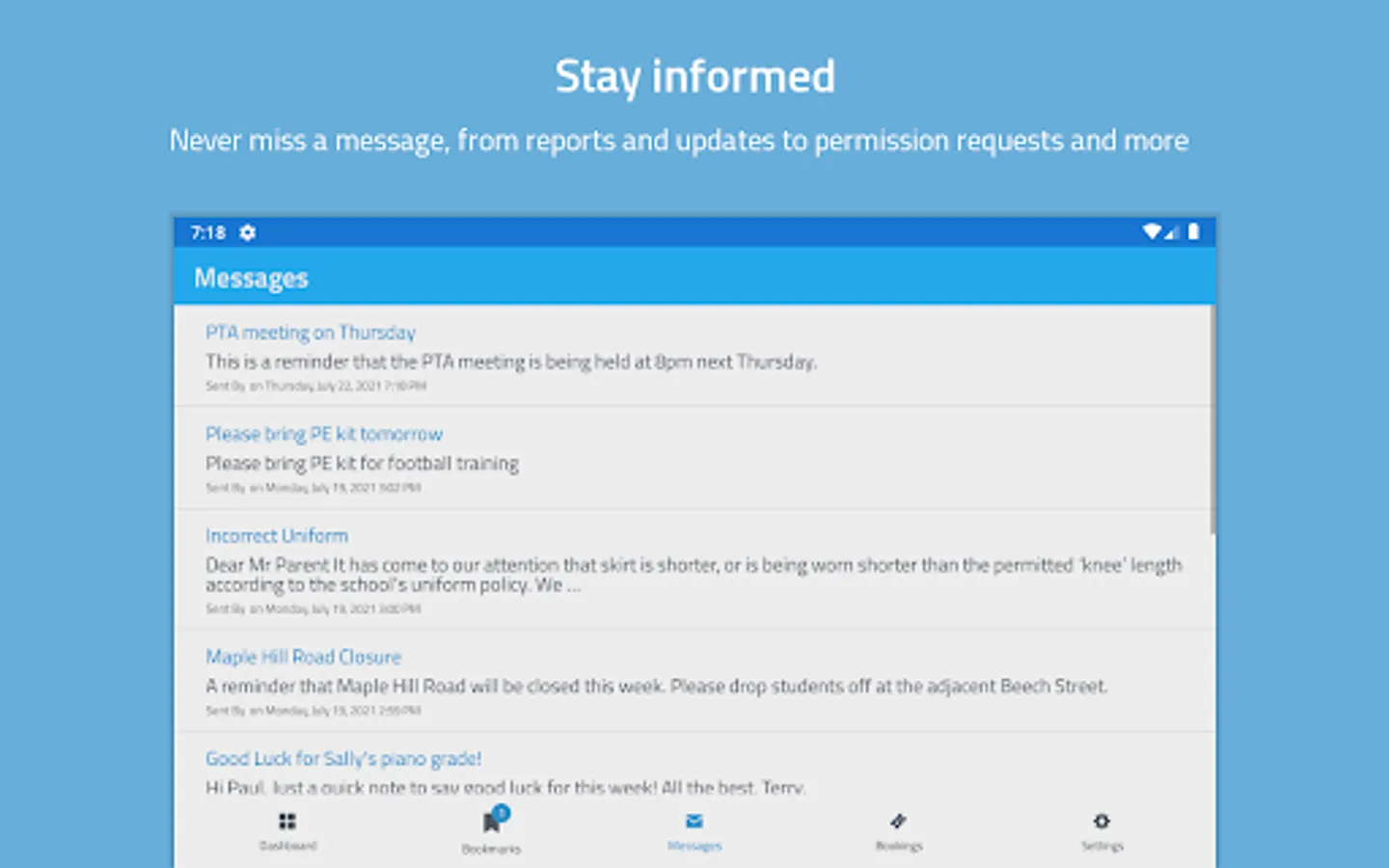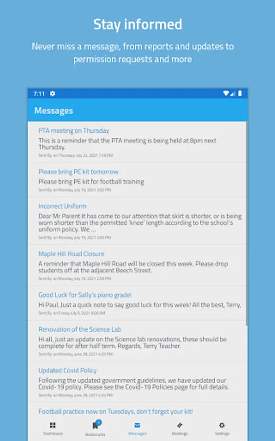• Instantly receive the latest news and announcements from school