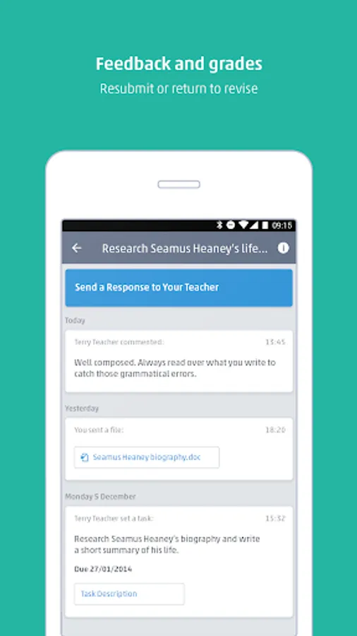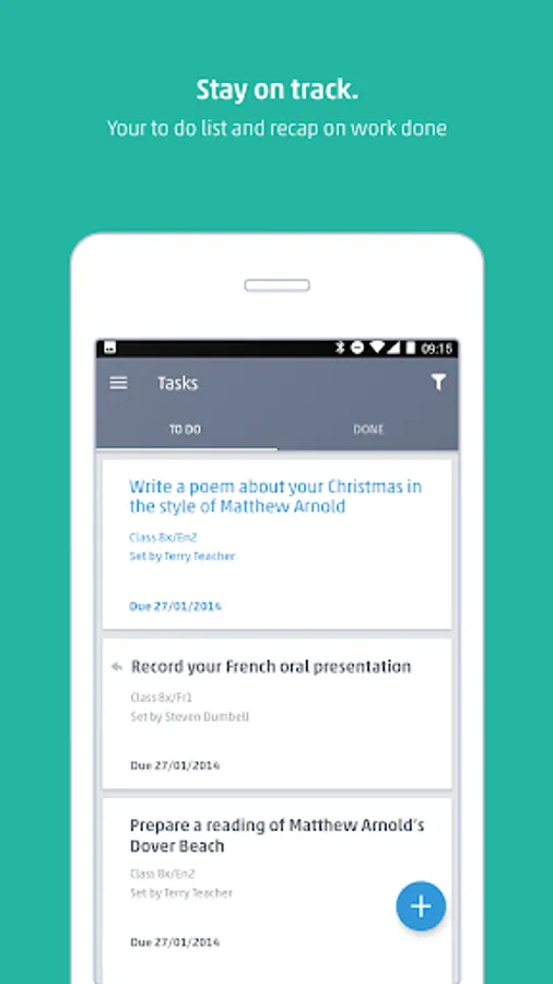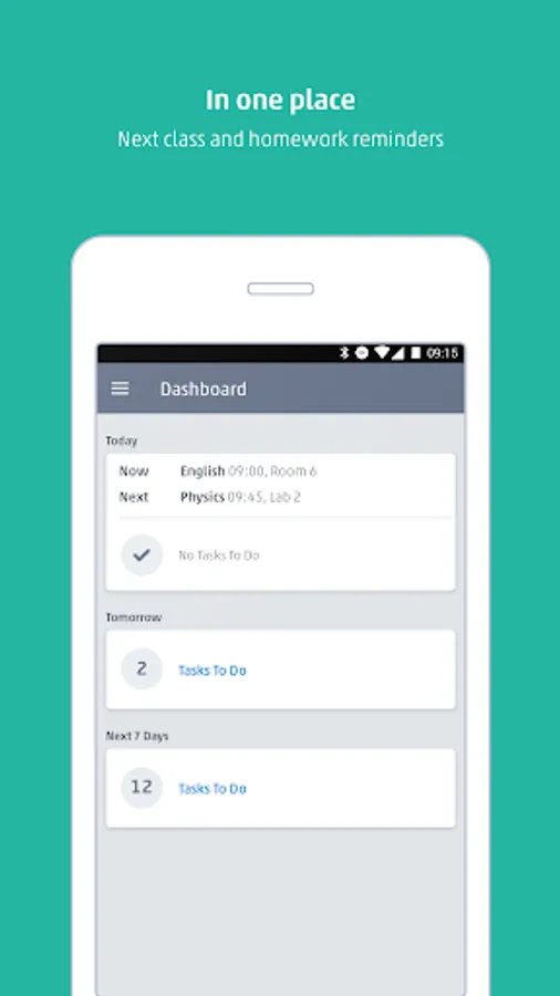 Simply log in using your school code (your teacher can give you this!) and see your complete timetable, including which teacher you have and where each lesson is. Your teachers can send you homework or other tasks, which will be sorted so you’ll always be on top of what you need to do. If you like, you can add your own tasks and link them to a specific class, creating a personal to do list.