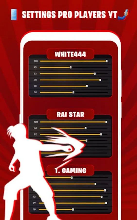 - Pro Player Setups: Gain get right of entry to to the settings used by renowned FF players who are taken into consideration professionals in the sport. Explore the setups of famous gamers like Rai Start, White444, Ruok FF, Born2Kill, Badge99, and Nobru.