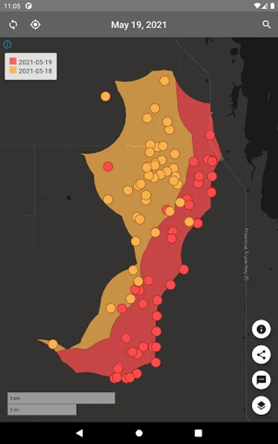 • Want to report a fire? We show you the location of each blazing fire detection and NRCAN perimeter.