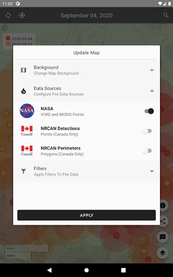 • We use two NRCAN layers to visualize detected fire and fire perimeters across Canada.