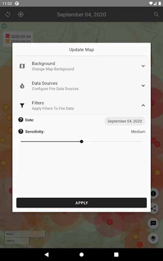 • Control the sensitivity of MODIS and VIIRS blazing fire detection filters yourself.