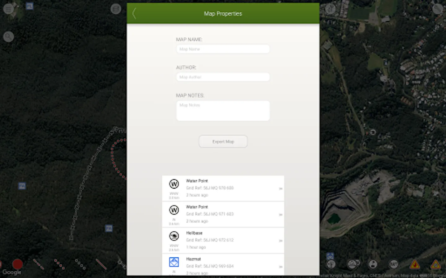 Multiple points can be drawn on the map and exported in an email. The map data can be exported as: