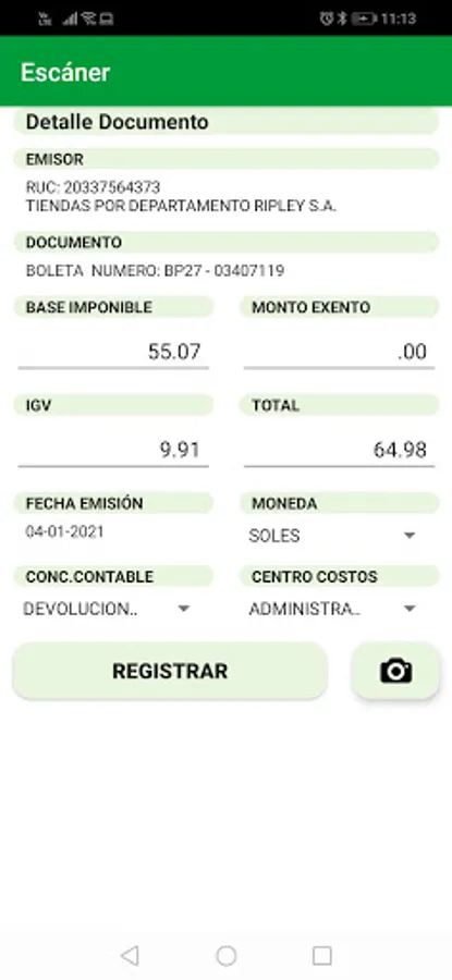 Prime ERP application for provision of expenses by QR code