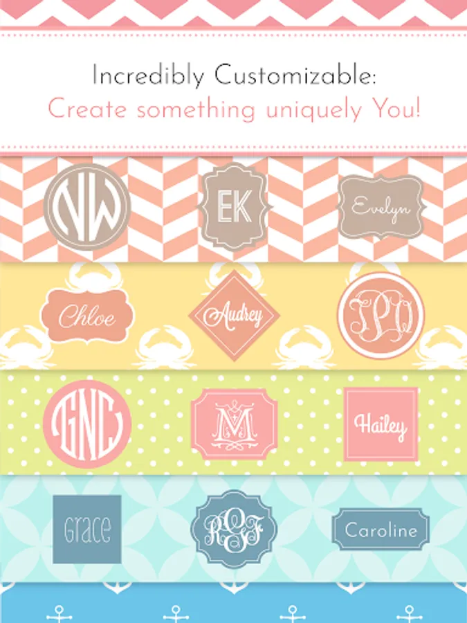 You'll love designing your personal wallpaper using our carefully-selected patterns or your own photos. Add a monogram frame and your initials or full name. Customize fonts, color schemes and more.