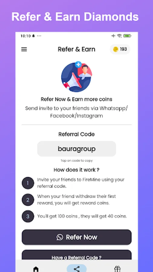 👨 You can also get elite pass and diamonds by inviting your friends to the FireMine. Go to “Refer” section and share your reference link with your friends.