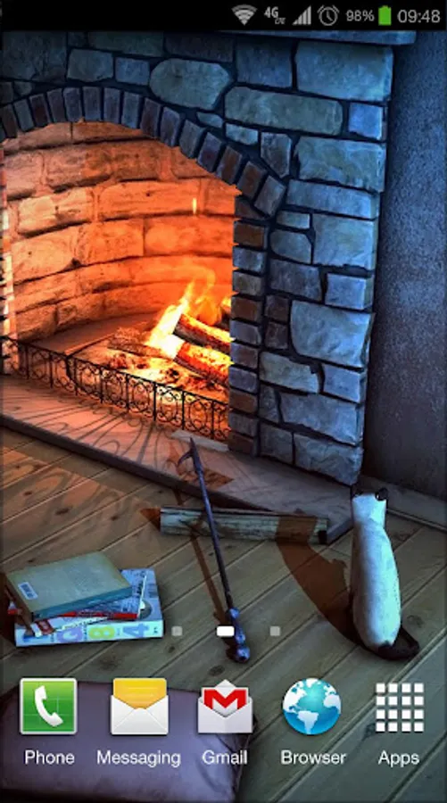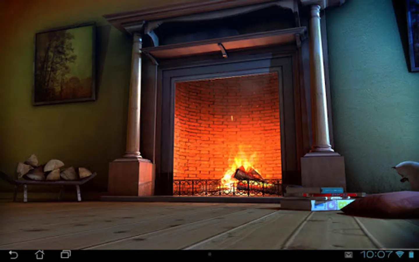 Installation: The main screen (long press) → Live Wallpaper → Fireplace 3D Pro
