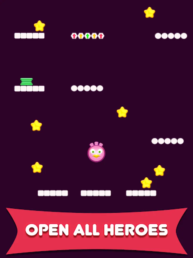 How can this be done? Very easy. Download a fun game. Launch the super app and tap the play button. Tilt phone or tablet to move left or right. The cool hero will adventure automatically. During the action, aim at the platform, and then jump over on the other and the other. You may collect stars and then exchange them to open new fun heroes. Use up power-ups they help get higher. There are springs and rocket platforms for this. Game jump warning: also avoid cool enemies, us doodle and helix! The goal is to reach new highs while avoiding obstacles and mega fun enemies. Attention: the left side of the screen is connected to the right side! Play a cool jump game adventure offline now. Leap your way through endless levels with crazy super obstacles in this platformer. You can play wherever you are. Join and experience the rich mega gameplay scenes of that jumper.