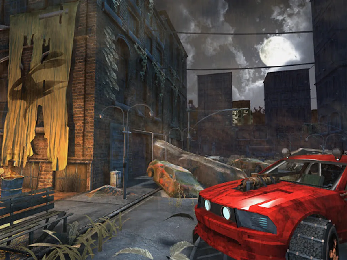 Traveling alone through the wasteland along the Mad Road you are ambushed by raiders! Barely surviving, a girl from nearby Junktown rescues you... on the condition you build a war car and bring the fight back to the raiders! Rise from the Junktown streets and earn the town's trust by performing car maintenance and fixing up their encampment before going on raids in the ruined cities of the Old World. Unleash your fury and destroy your enemies to steal parts from their vehicles to make your own car stronger! Junktown and maybe the whole wasteland is counting on you!