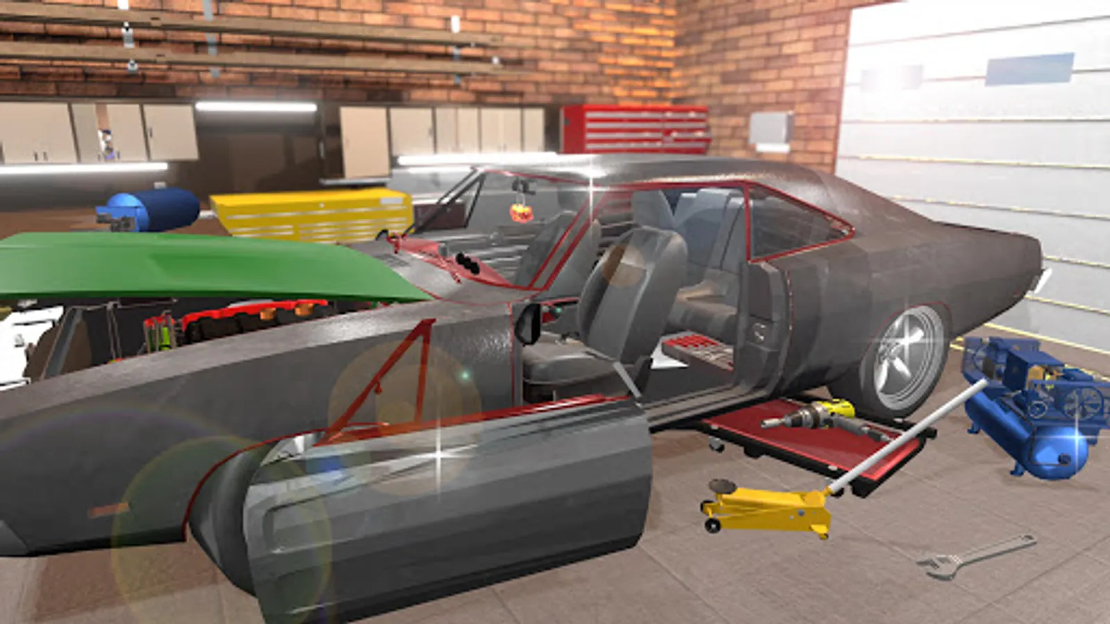 It's your birthday and you've just been gifted an old muscle car! The car left to you is a total disaster, but that doesn't mean you can't turn it into something great! The nearby school has equipment to help, and you have an unmatched ability to find the special parts that will transform this car into something really cool. You won't be working alone either - your friend from next door has offered to help, and she knows cars! Working on a car from the ground up will be difficult but she will give you her full support to get the job done!