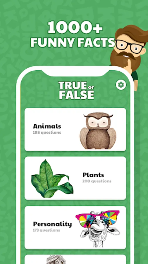 It that interesting? In this game you can make your own decision on the quizzes whether they are true listed in the app and see whether you are right. Also you can have the answer and explanation about the question. The true or false quizzes are in different categories showing as bellow: