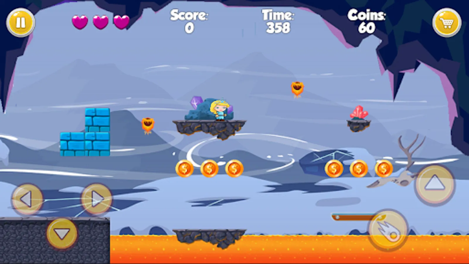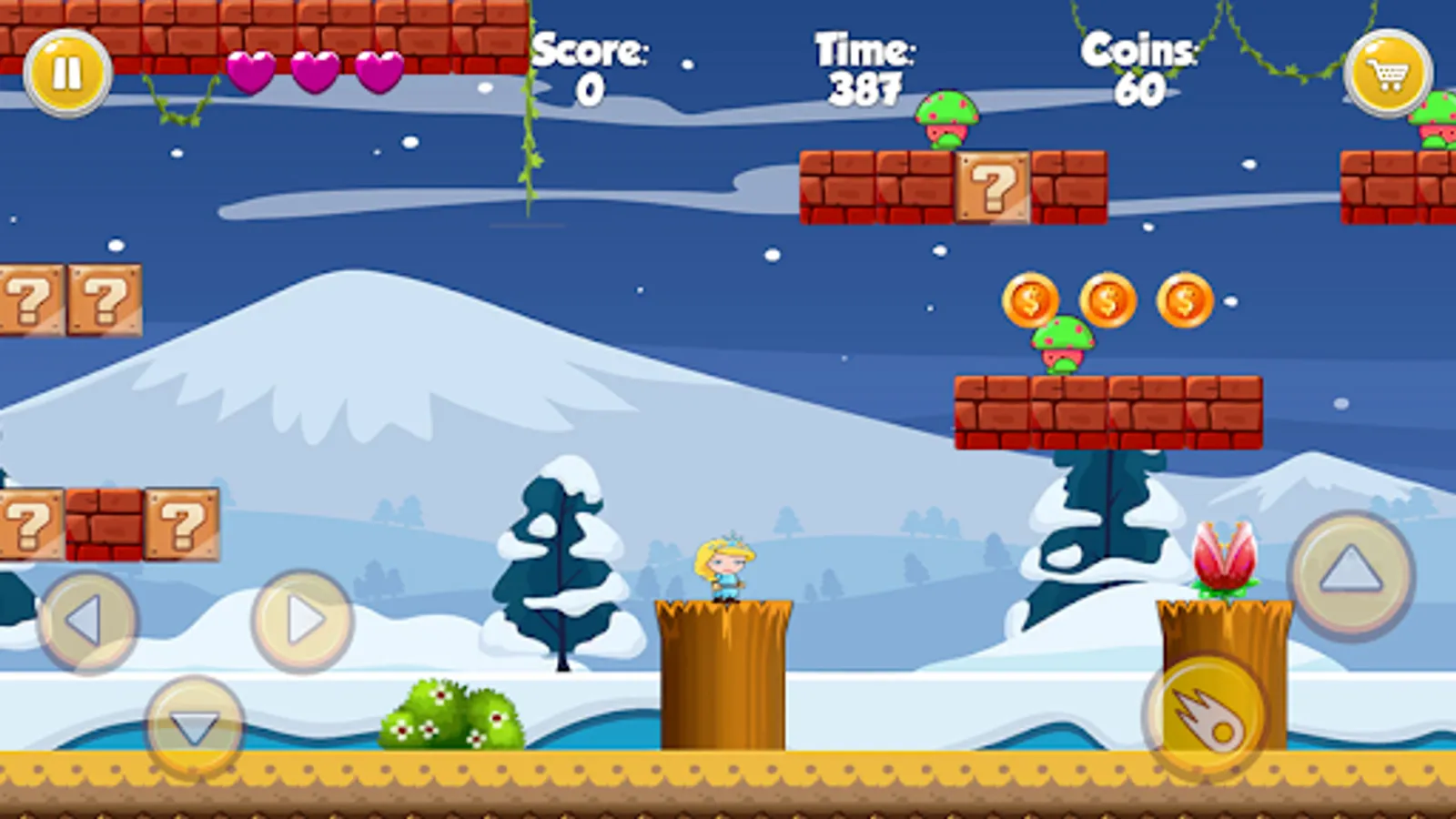 You must help snow princess girl complete missions in every world. Enjoy the magical world, run and jump to overcome all obstacle. Collect as many coins as possible.