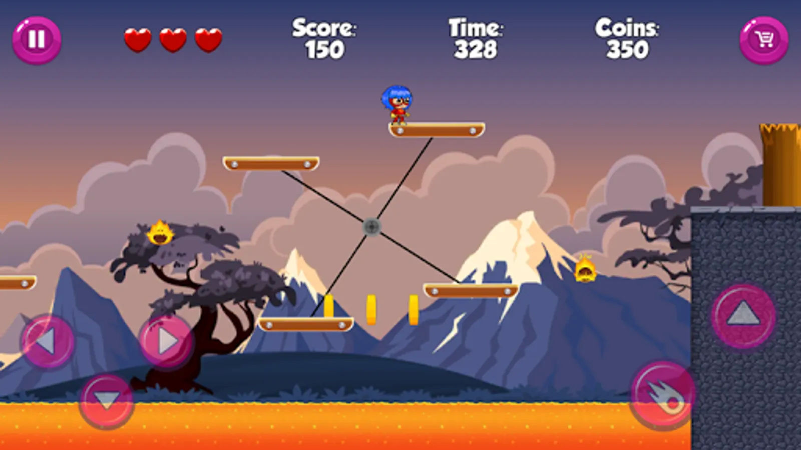 - Use button to jump, move and attack.