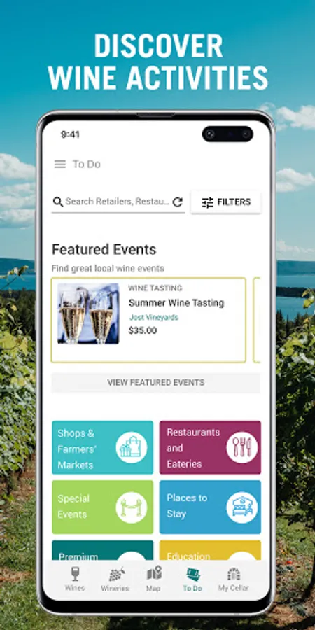 Explore: Find local wines, farm wineries and experiences, all based on your preferences. Plan a tasting route, explore local activities or add to your cellar with wines that are perfect for you.
