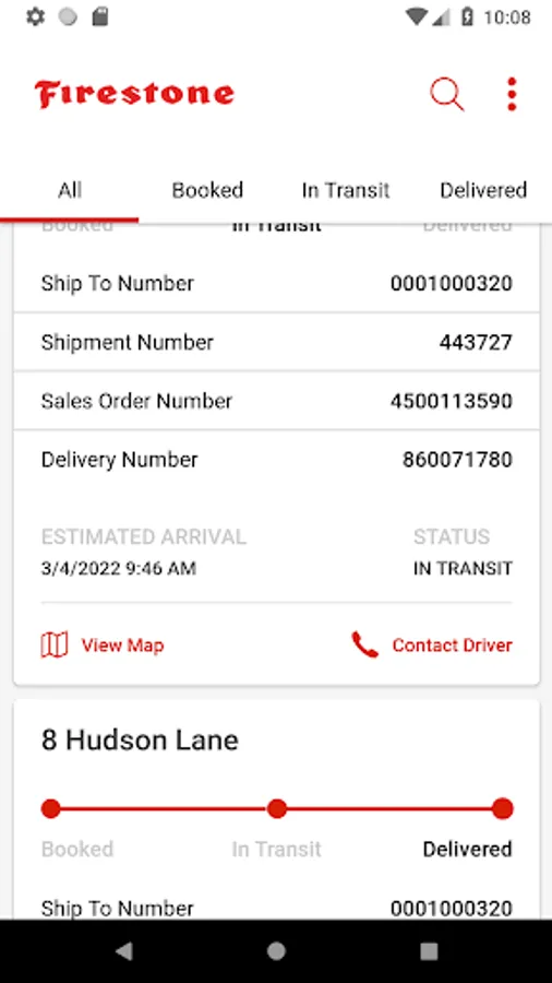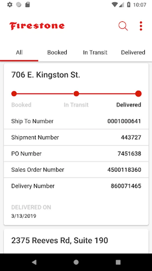 • Search and track orders using a Firestone PO number or Firestone sales order number