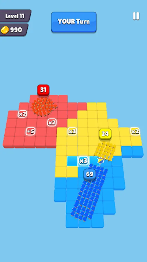 Color the grids you want to takeover and send your troops. But be careful, once you start the war you risk the same amount from your own land. Let the strongest win the war!