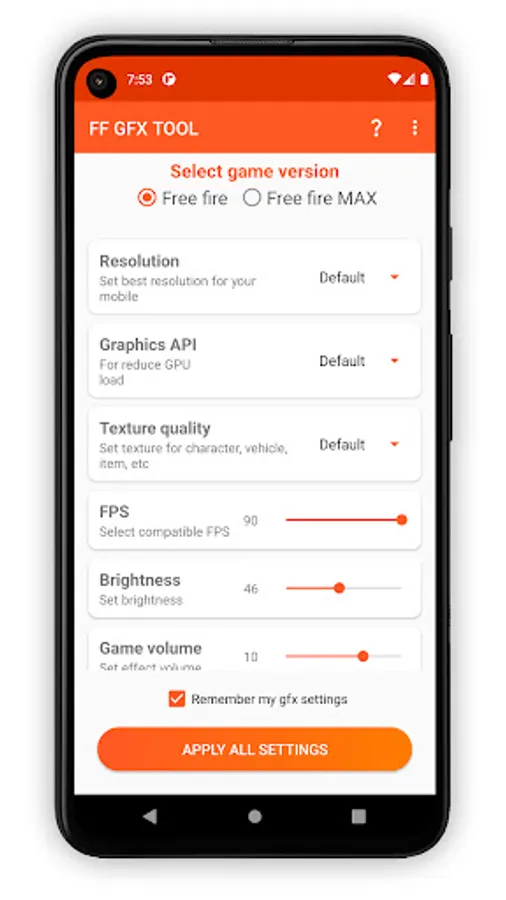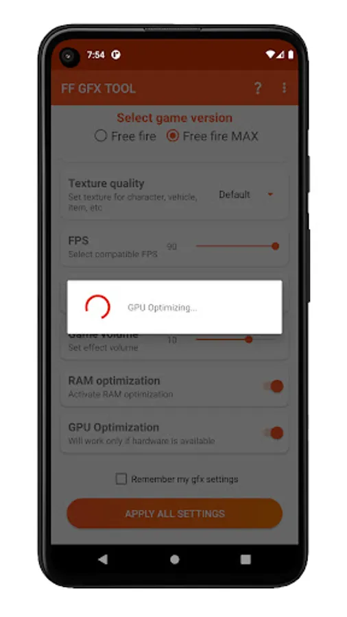 This GFX Tool app is a utility launcher for specific games where you can customize some settings to improve gaming performance and smooth gameplay.