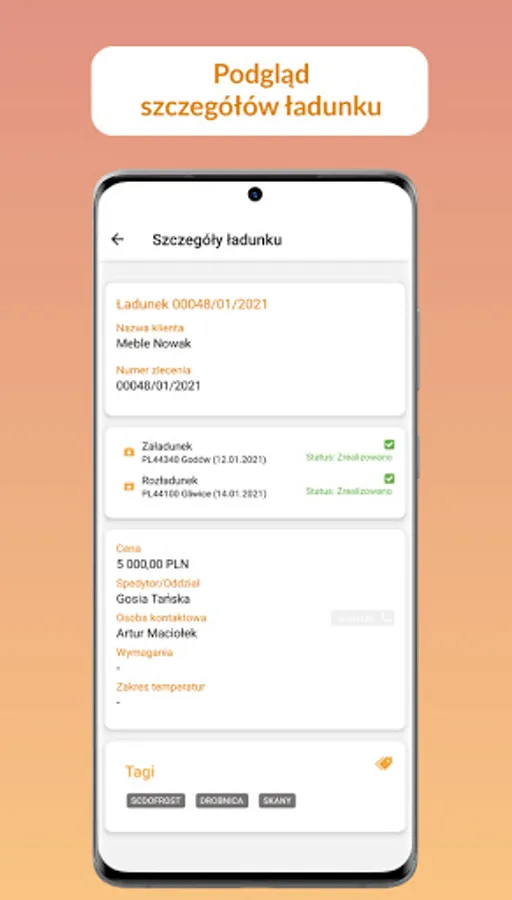 The application allows forwarders and dispatchers to check the stage at which the transport order and load are. You gain a preview of the current status of orders and details related to the stages of their implementation. You can monitor the situation on the route on an ongoing basis and establish telephone contact with the driver. FireTMS Dipso allows you to control transports and quickly react to unforeseen situations.
