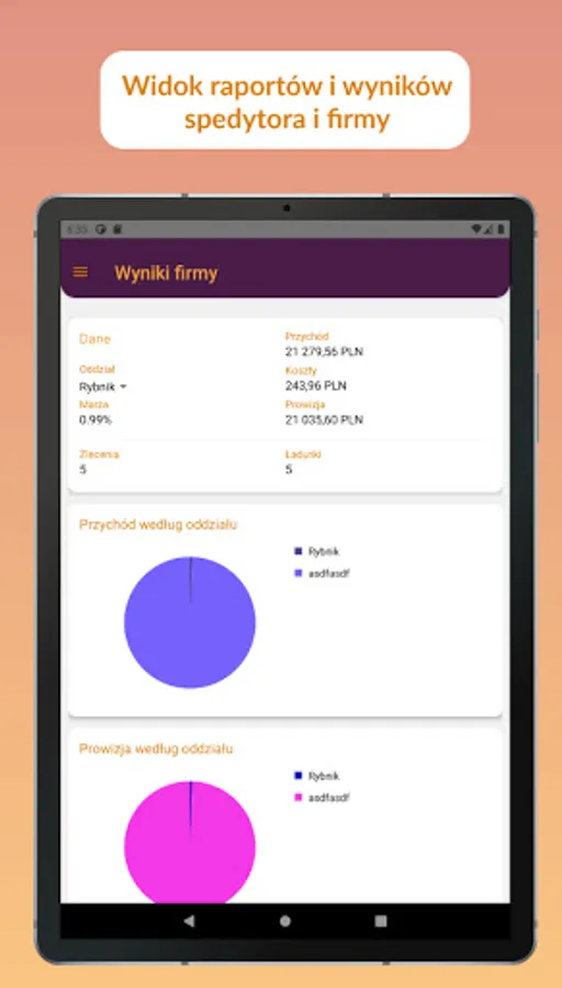 ☑ order reports - the application generates order reports, includes the individual results of the forwarder and the company's results