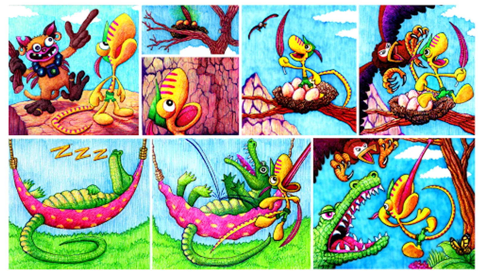 Play as Camill the tongue swinging chameleon. Glide branch to branch, tree to tree, eating bugs and dodging hungry beasts. Will you wake the All-Seeing Aye? Roll the Dice of Destiny to determine your fate! Compete with friends and let the animal spirits guide you on your quest.