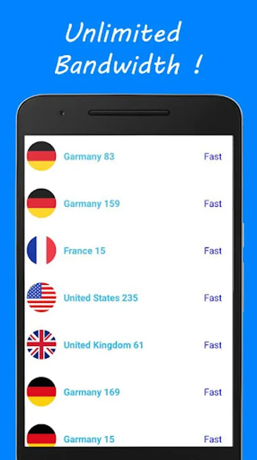 - List of countries around the world to choose from which we test and update every 20 minutes!