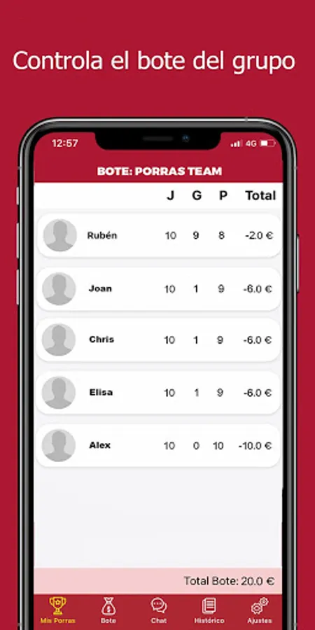 If you still haven't had enough, the application makes available to you in each Porra group in which you participate: