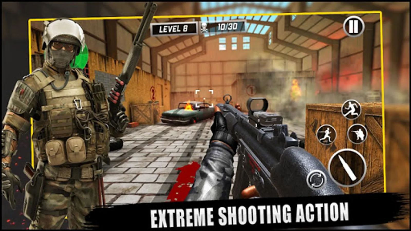 The deadly criminals, gangsters & ruthless counter terrorists are at combat & attacking your territory zone but don’t worry you’re well equipped with the modern weapons like pump gun games, shotgun, pistols, sniper guns, rifles & ammunition materials in war time to eliminate & escape sniper of evil enemies. If you love to play & attack with fighters firepower in sniper mission of shooting games this is the right choice for you. Join this new game 2020 of shoot war strike with new gun shooting battlefield full of terror and horror enough to make you feel scary. Let’s play to gratify in rational graphics of FPS action games with smooth & easy controls. You have to bravely fight like army commando in the front line war battle special ops & target accurately at terrorist zone to succeed in gun games. So being a special warrior strike shooter soldier defeat your protagonist gangster strike enemies to save the city & world for survival from counter terrorism.