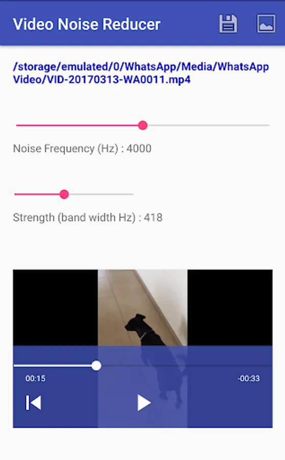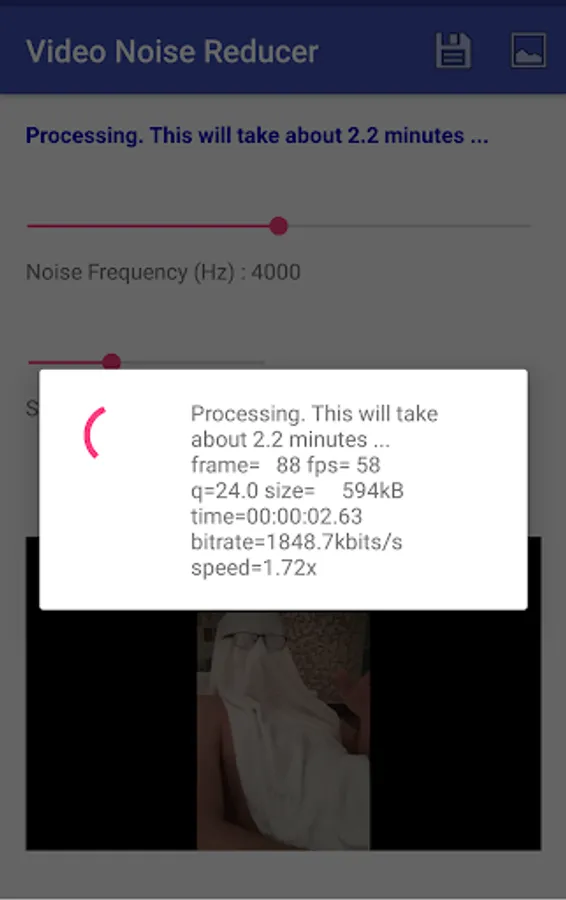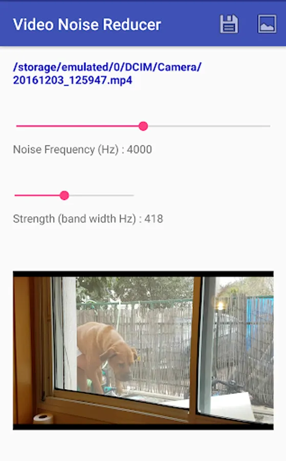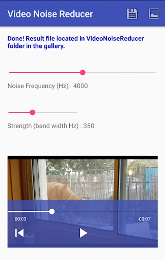 4. Press "Apply". The result is saved in "VideoNoiseReducer" folder in the gallery.