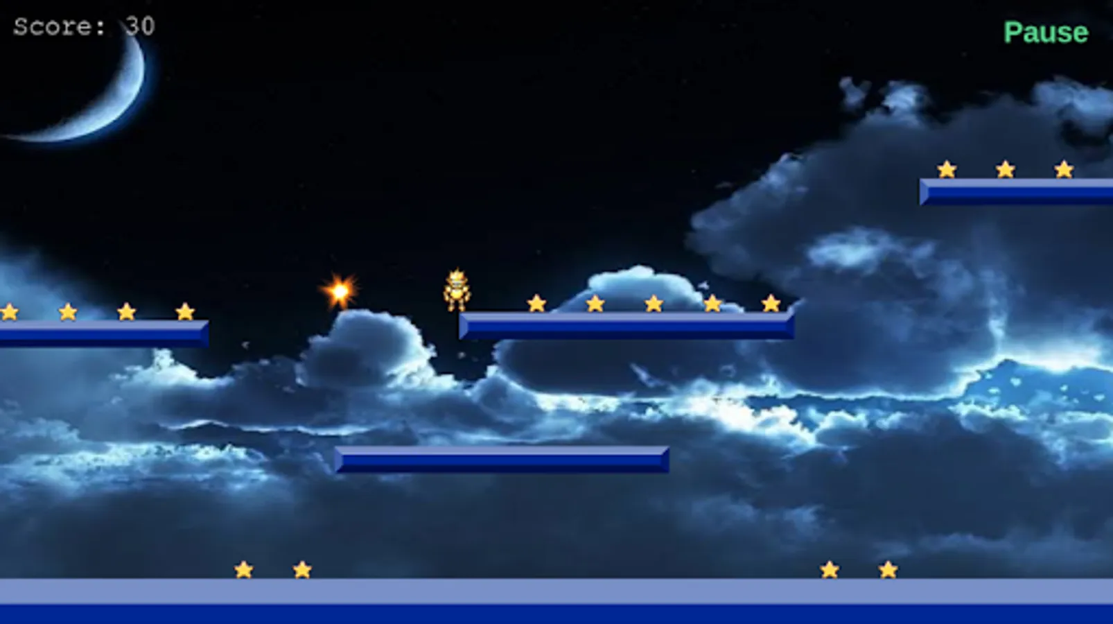 Tiniyo is character who collect star from sky by preventing himself from flying Bomb.