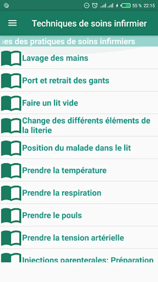 Nursing is a kind of memo for health workers. It contains the methodological, clear and concise summaries of nursing techniques. These summaries consist of fact sheets based on university nursing documents.