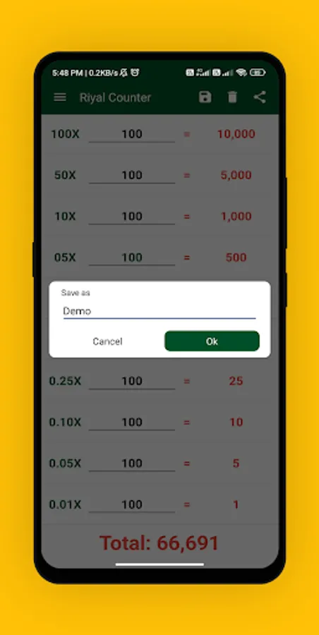 Riyal Counter is cash counter app for SAR Currency Calculations simple & understandable user interface provided by us.