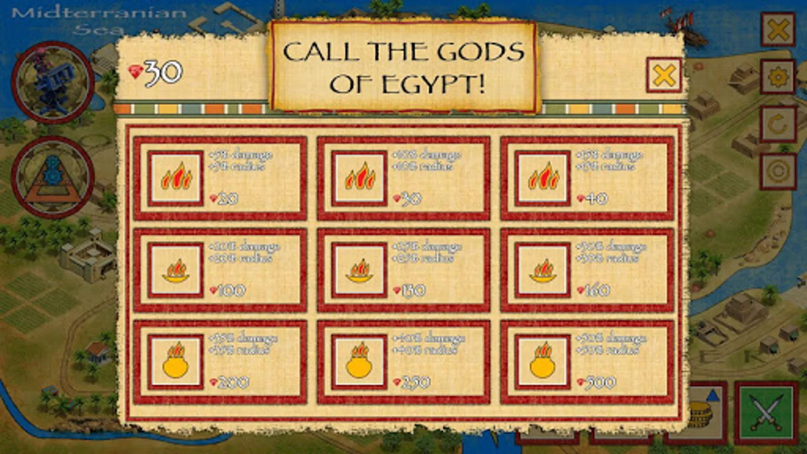 Every level is going to be lot more challenging with more than 16 types of killer enemies and almost 6 types of deadly weapons that are used during the battle. The game is designed with more than 60 adventurous fierce battles and exciting quests. "Defense of Egypt" also features 5 types of established gears for influencing the characteristics of combat vehicles, with an option to improve them.