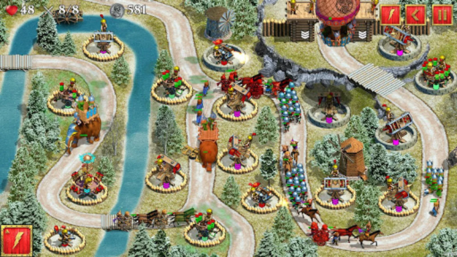 - Ability to personally control the battles, using grenades, bombes, Tribolos, lightnings, Greek fire, poisonous gas, frost, and meteor rain